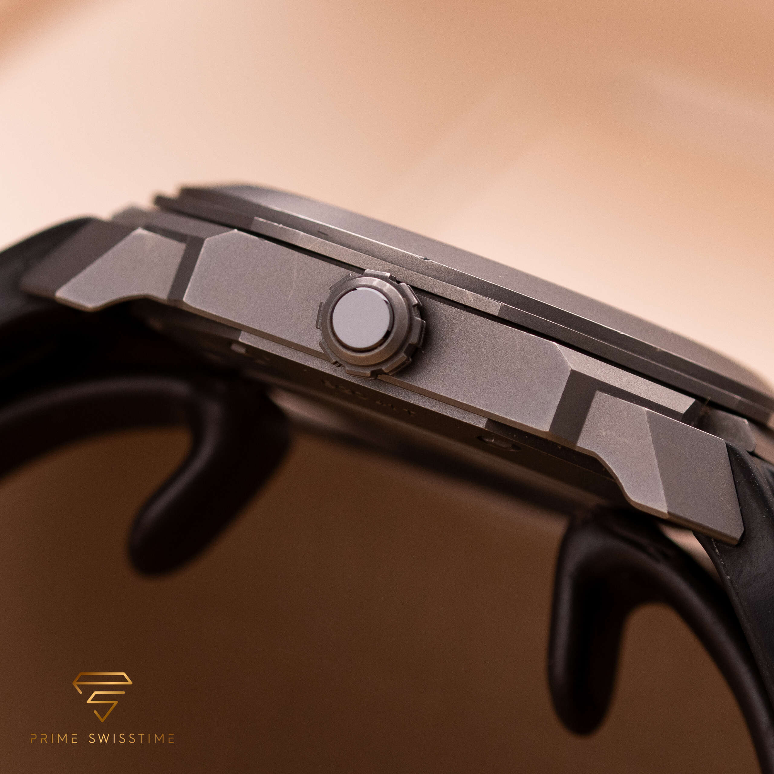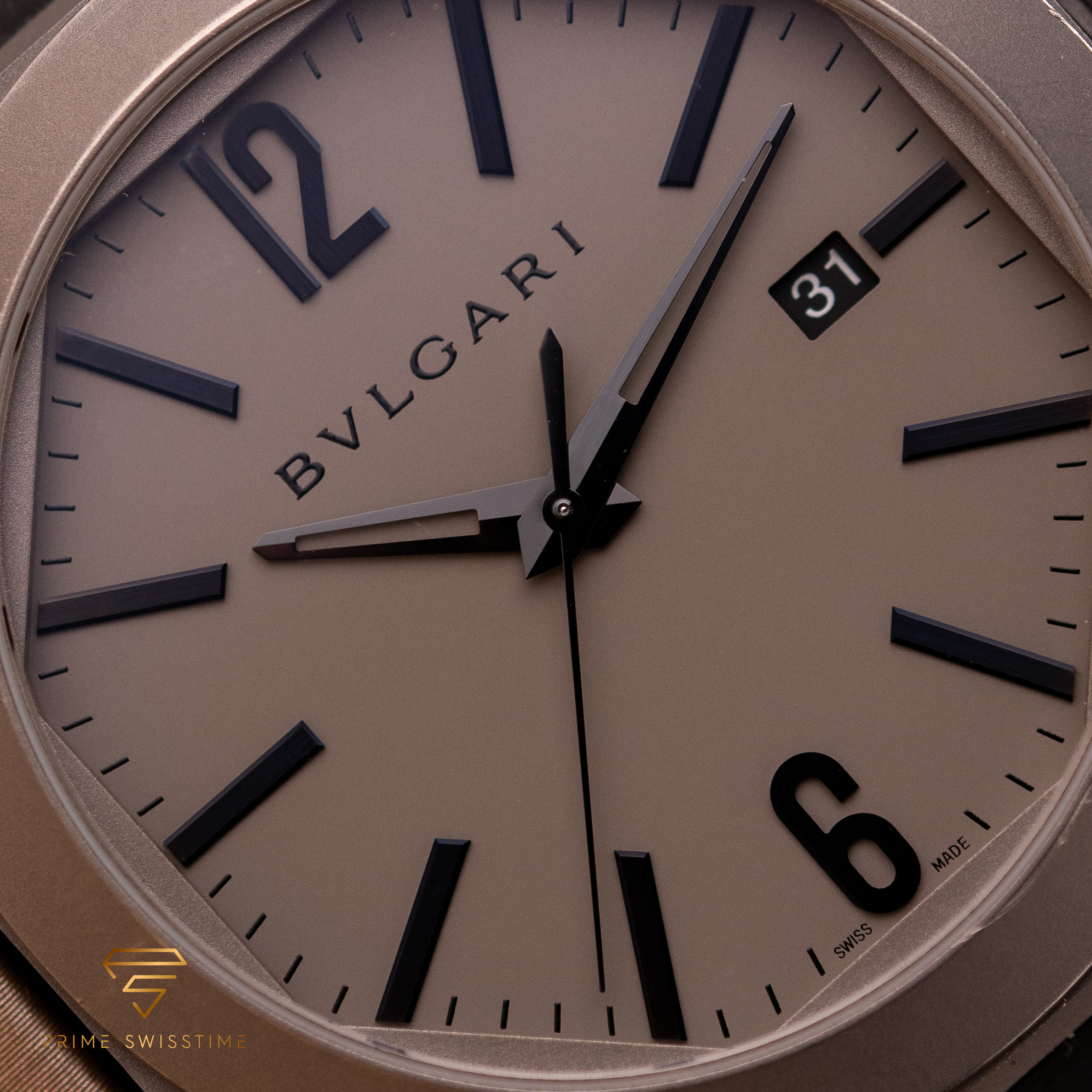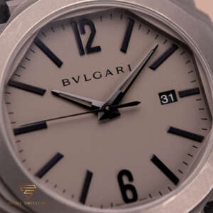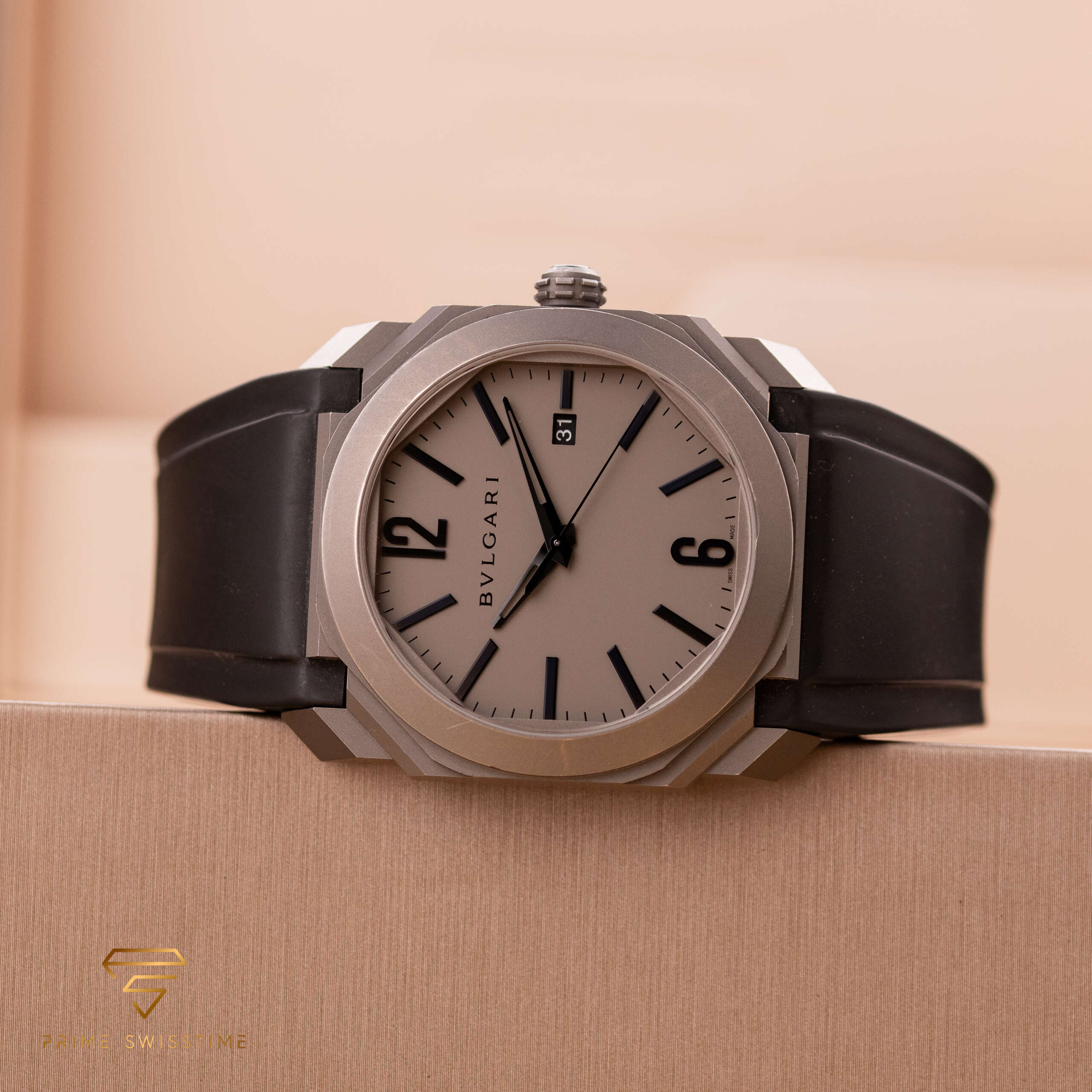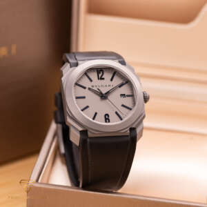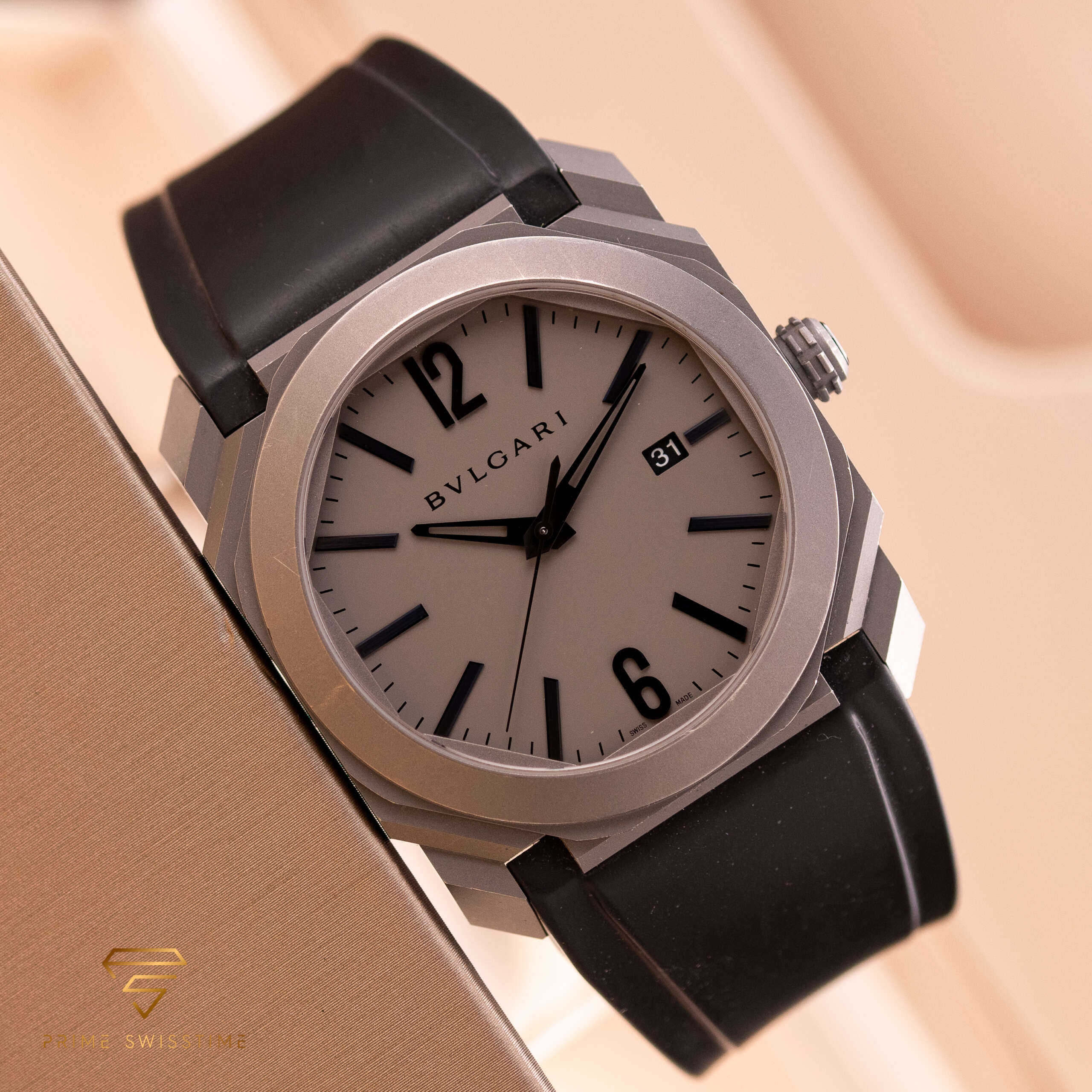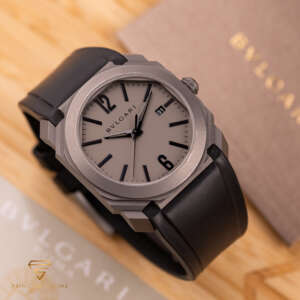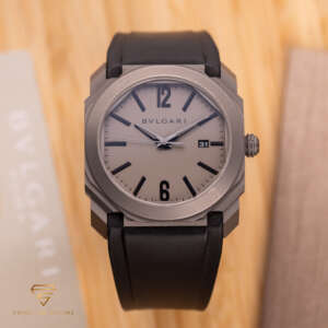 Die Bvlgari Octo ist ein kühner und moderner Zeitmesser, der für sein einzigartiges geometrisches Design und seine moderne Ästhetik bekannt ist. Die Octo-Linie kombiniert innovative Materialien mit außergewöhnlicher Handwerkskunst, was sie zu einer herausragenden Wahl für alle macht, die eine unverwechselbare Uhr suchen. Dieses besondere Stück, eine leichte und sportliche Version mit einem Titangehäuse und einem Kautschukarmband, wurde ursprünglich im Jahr 2020 verkauft. Die Uhr wird als komplettes Set mit der Originalbox und den Originalpapieren geliefert und ist damit eine hervorragende Option für Sammler und Liebhaber gleichermaßen.