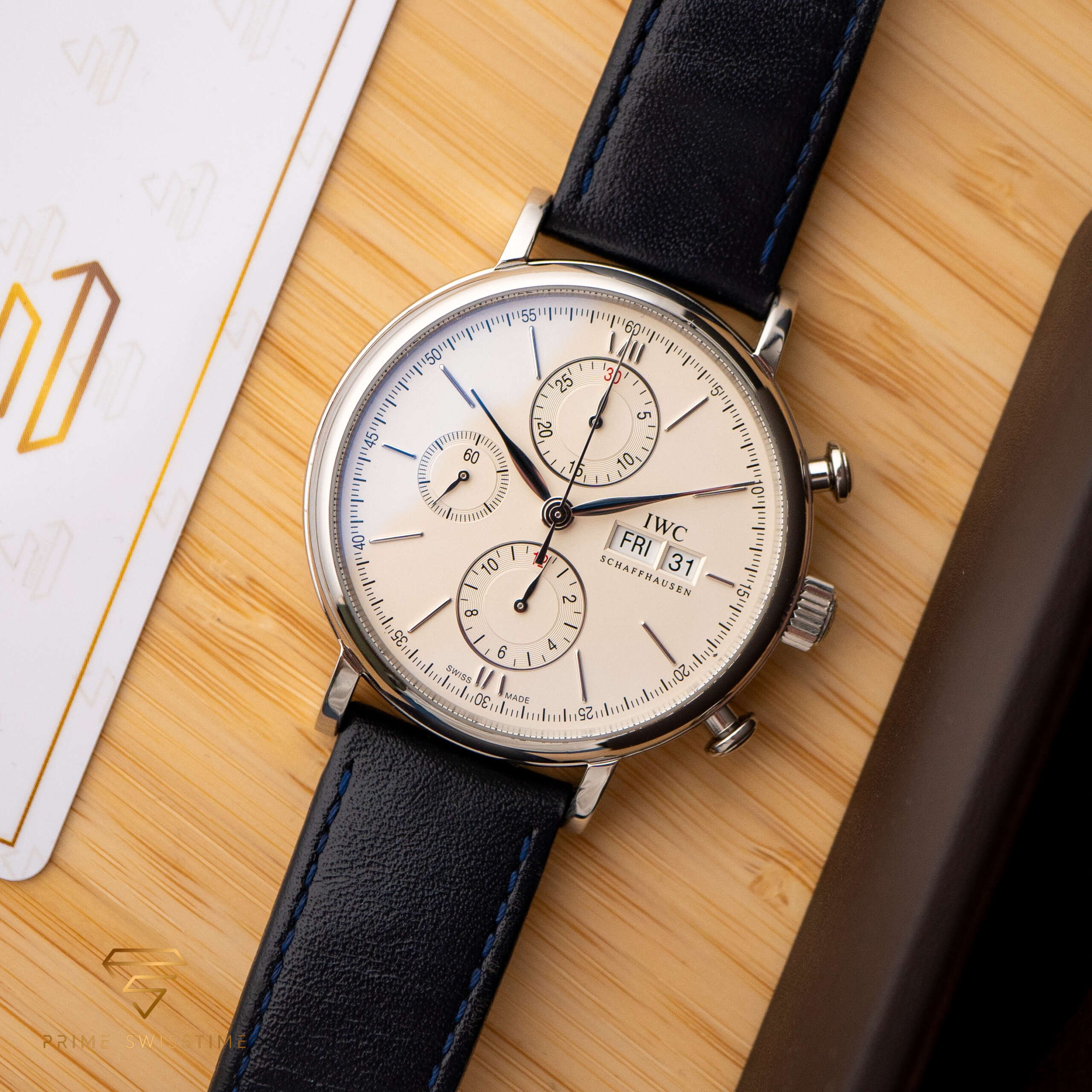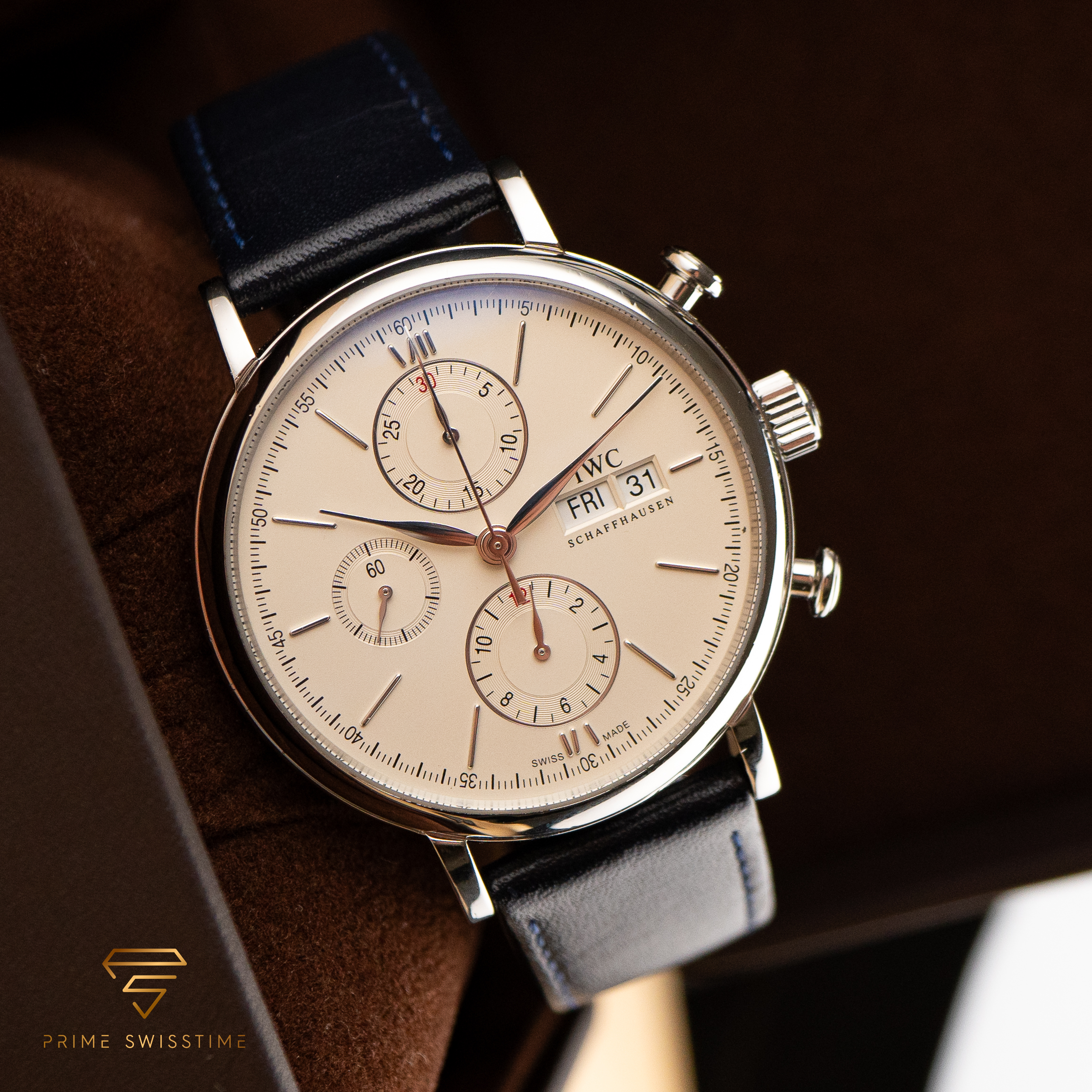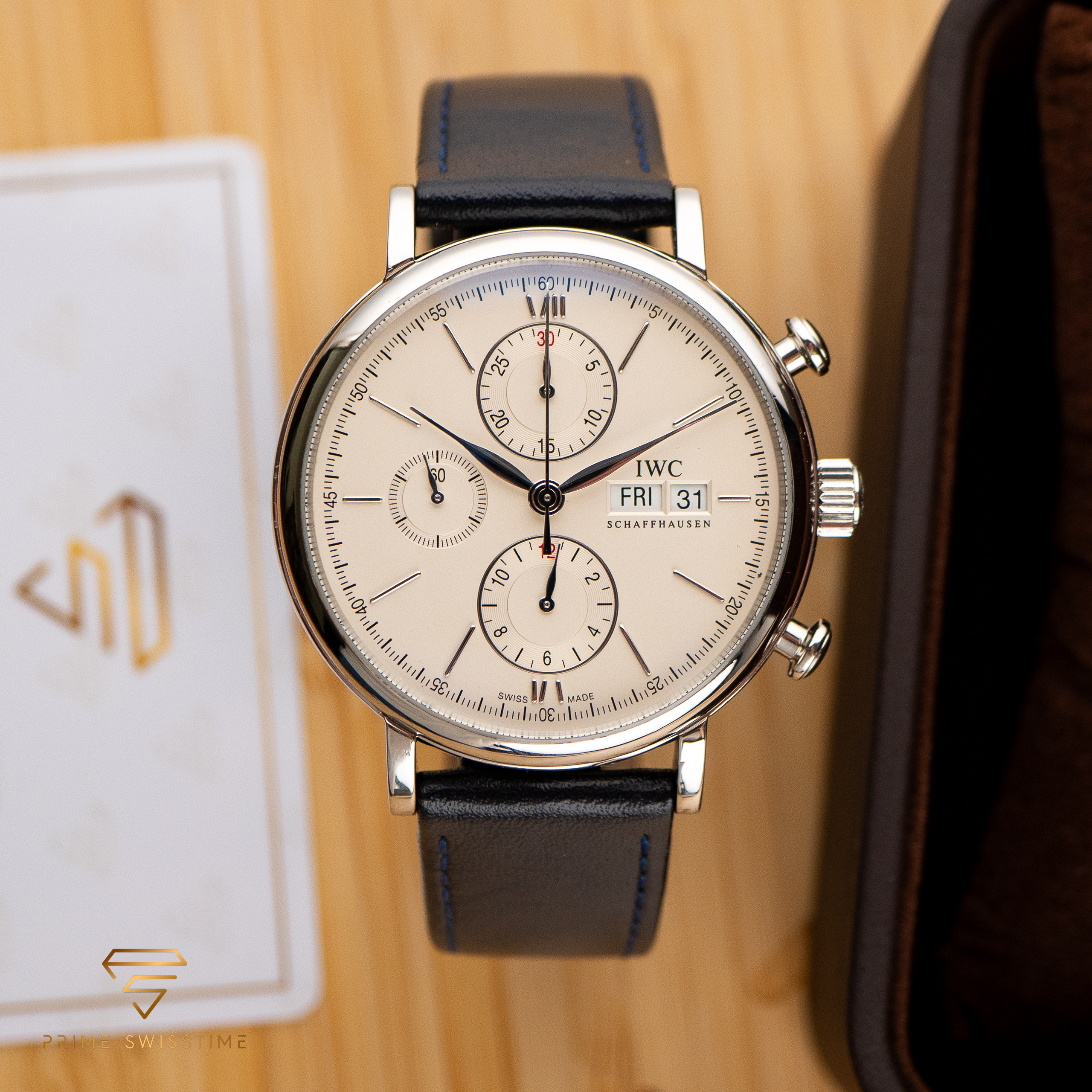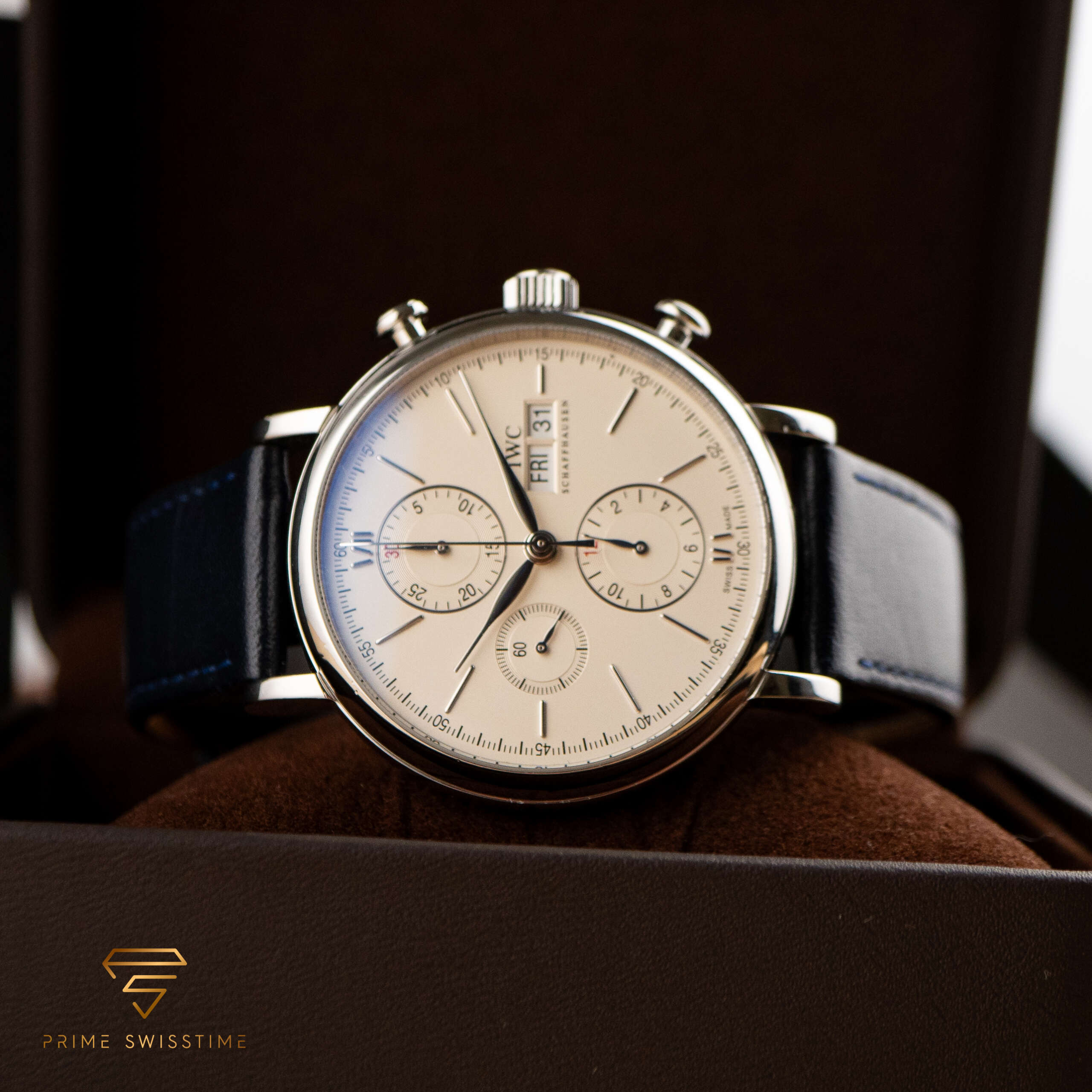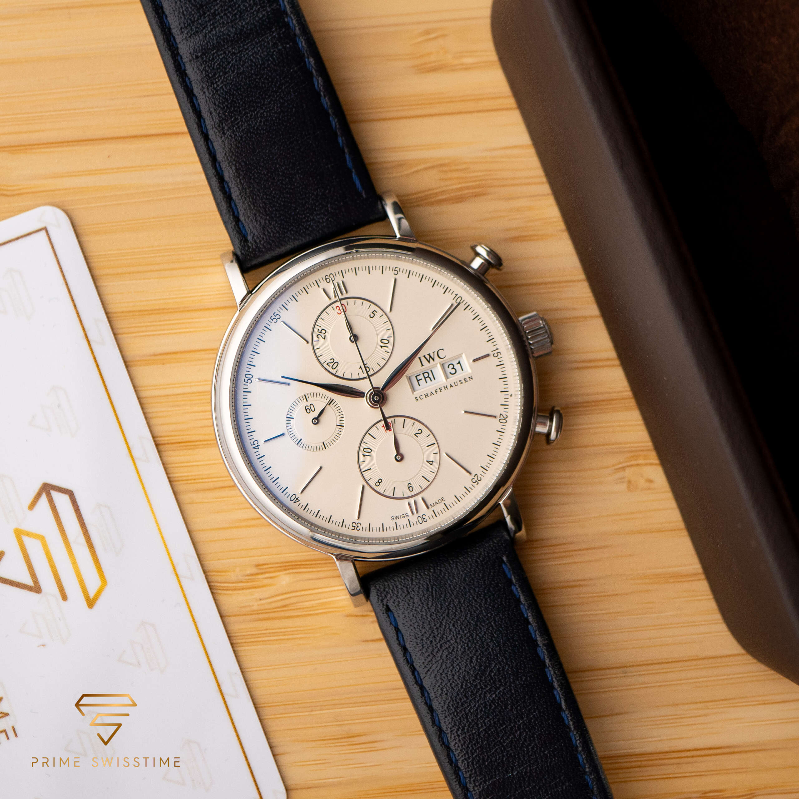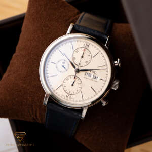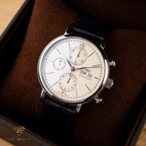 Der IWC Portofino Chronograph ist ein atemberaubendes Beispiel für Eleganz und Präzision, bekannt für sein raffiniertes Design und seine ausgefeilten Funktionen. Dieser Chronograph kombiniert zeitlosen Stil mit zuverlässiger Leistung, was ihn zu einem Highlight in jeder Sammlung macht. Dieses Exemplar wurde frisch gewartet und wird mit einer externen Box geliefert, was für jeden Liebhaber einen hohen Wert darstellt.