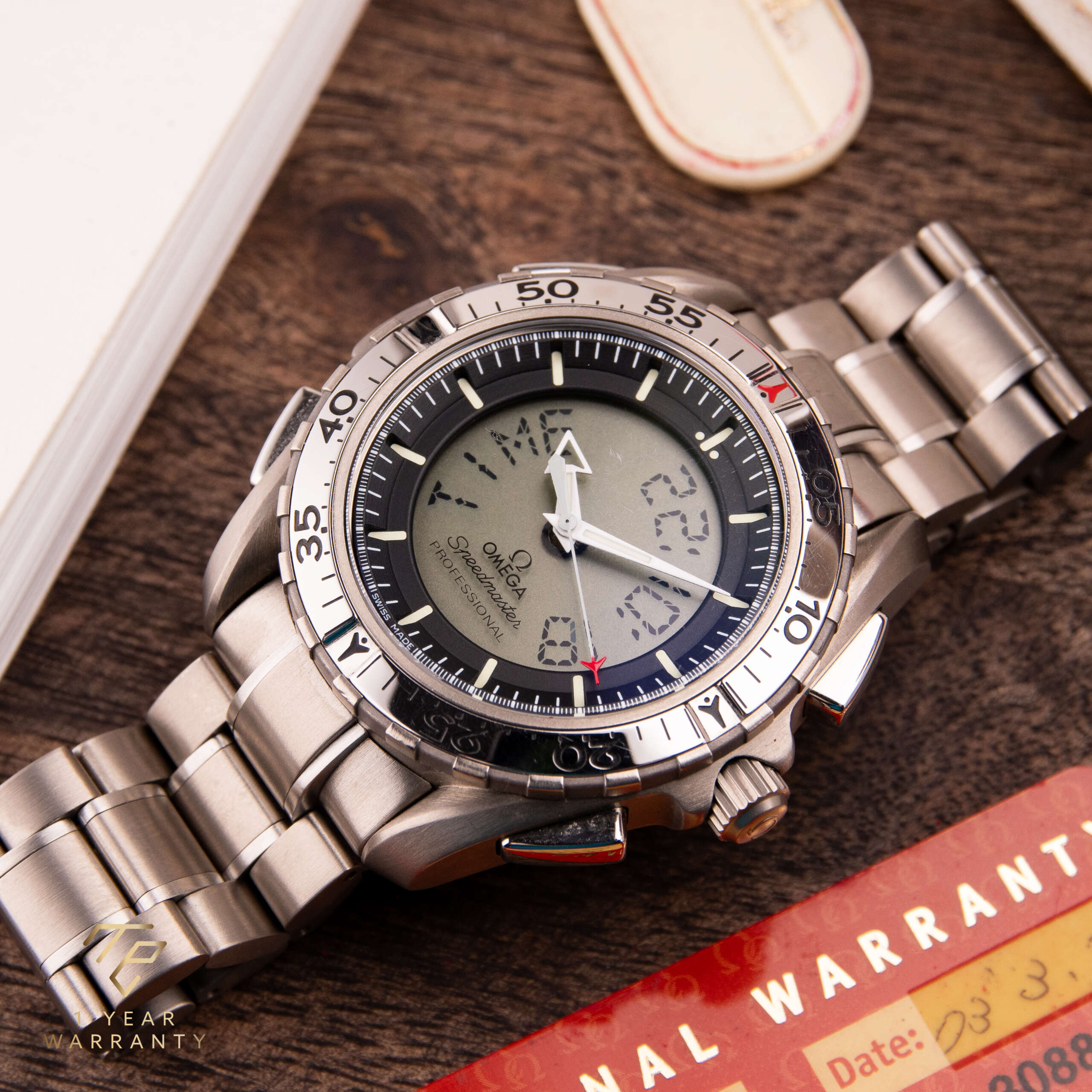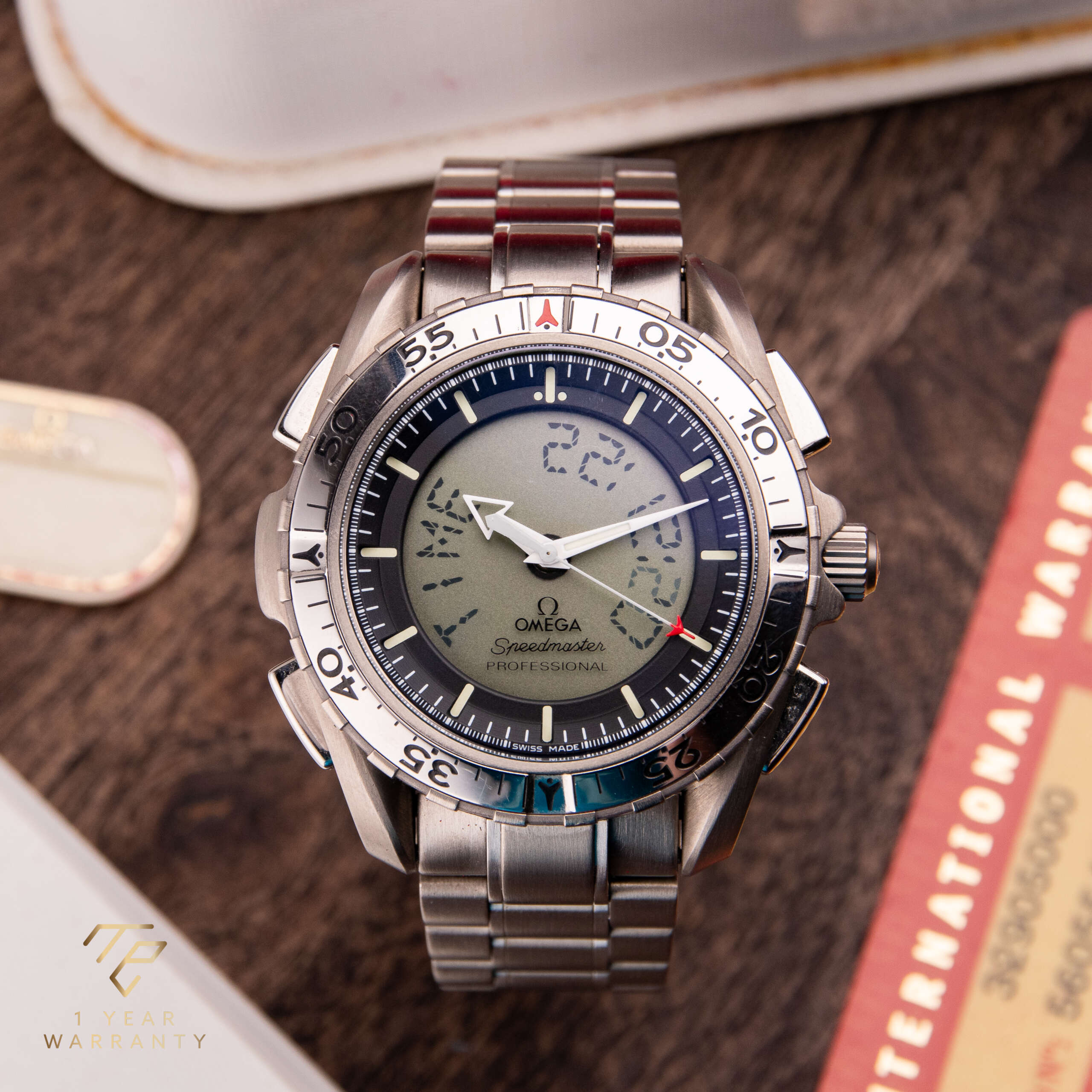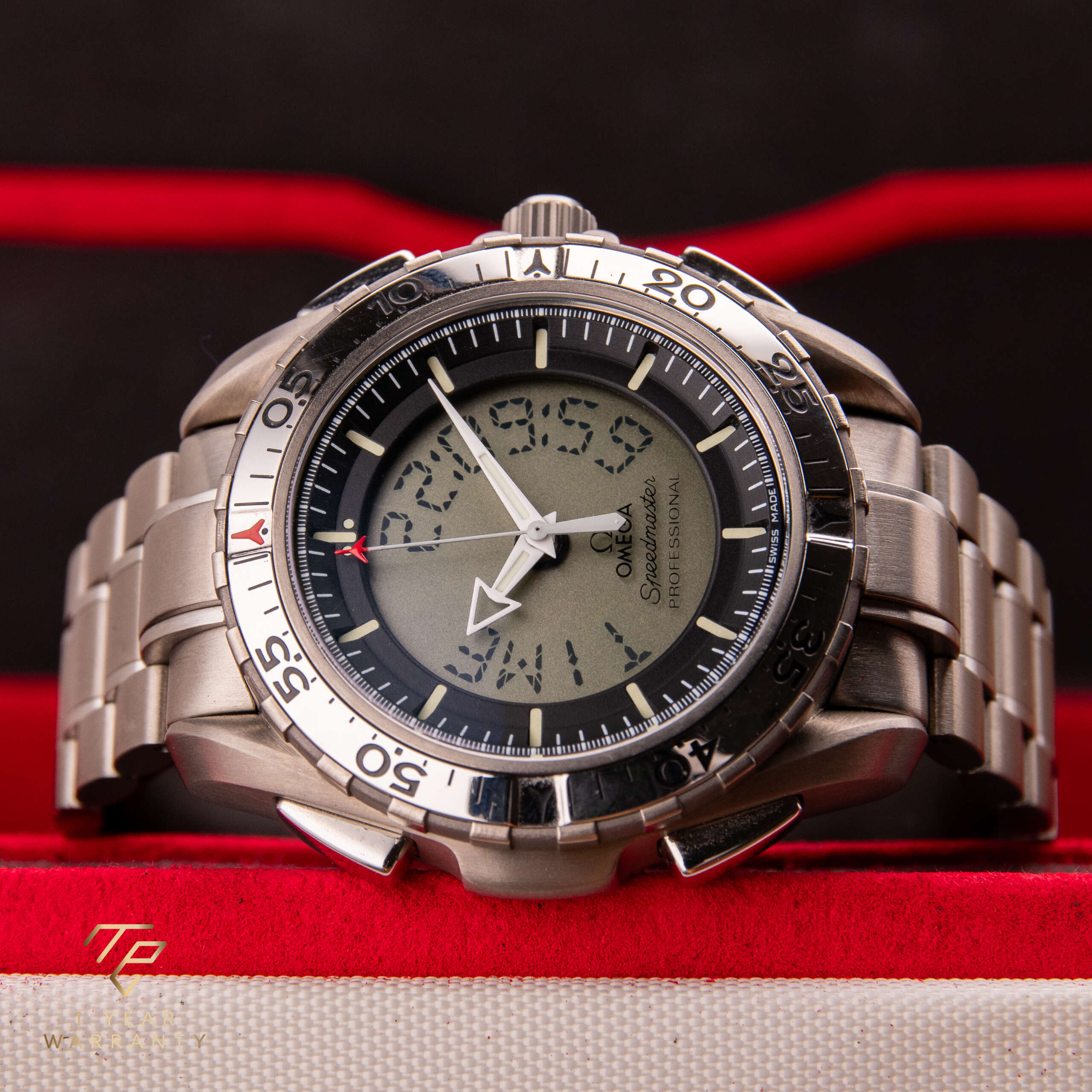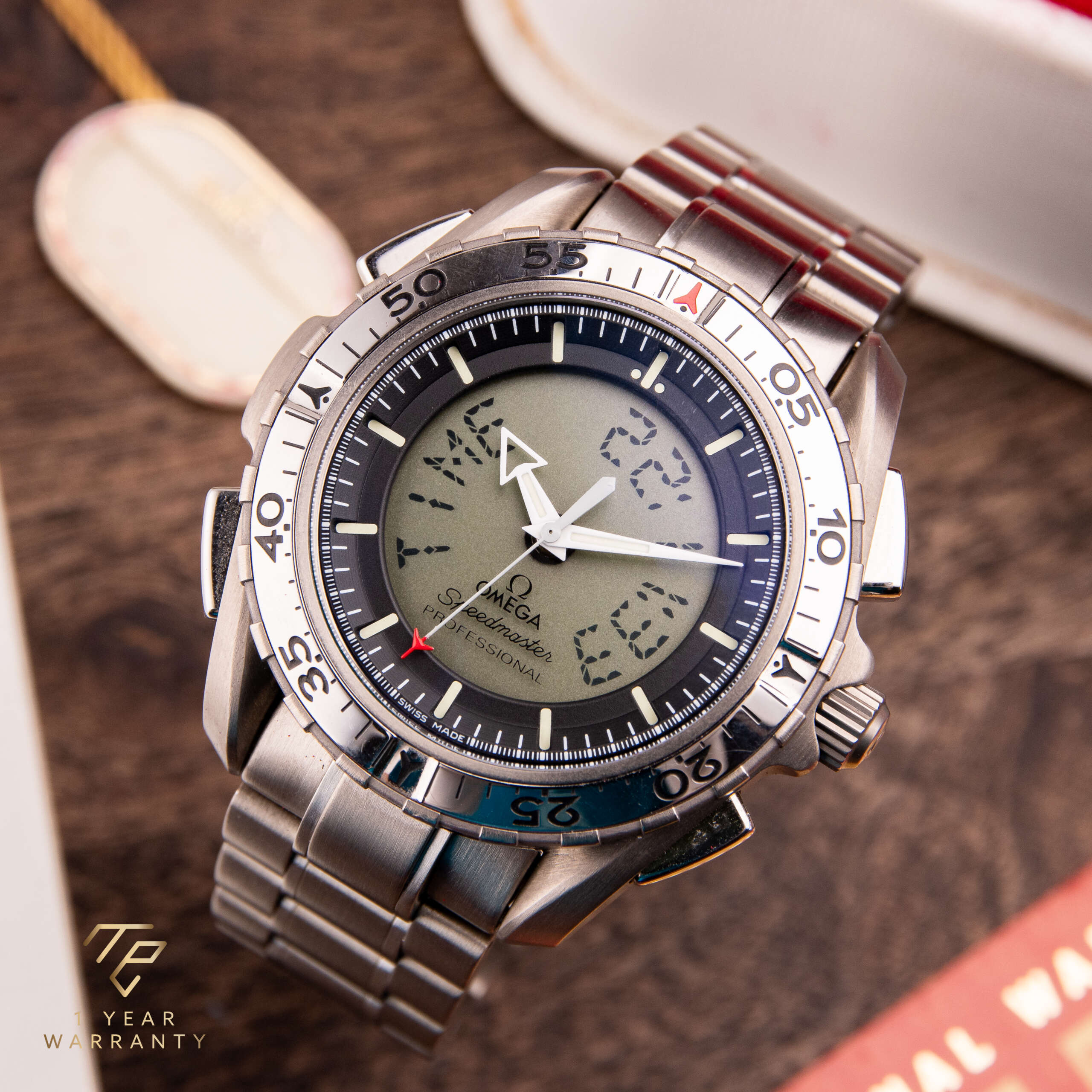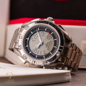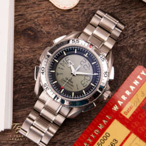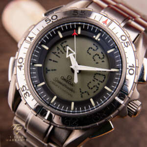 Die Omega Speedmaster X-33 ist ein einzigartiger und innovativer Zeitmesser, der mit fortschrittlicher Funktionalität und dem Fokus auf Präzision entworfen wurde. Dieses Modell, das für seine Verbindung zur Weltraumforschung bekannt ist, stellt eine bahnbrechende Errungenschaft in der Geschichte der Uhrmacherei von Omega dar. Dieses besondere Stück, das ursprünglich im Jahr 2003 verkauft wurde, ist ein seltener Fund in dieser Referenz. Die aus Titan gefertigte Uhr ist außergewöhnlich leicht und angenehm zu tragen. Sie ist in sehr gutem Zustand und wird komplett mit der Originalbox und den Papieren geliefert, was sie zu einer bemerkenswerten Ergänzung für jede Sammlung macht.