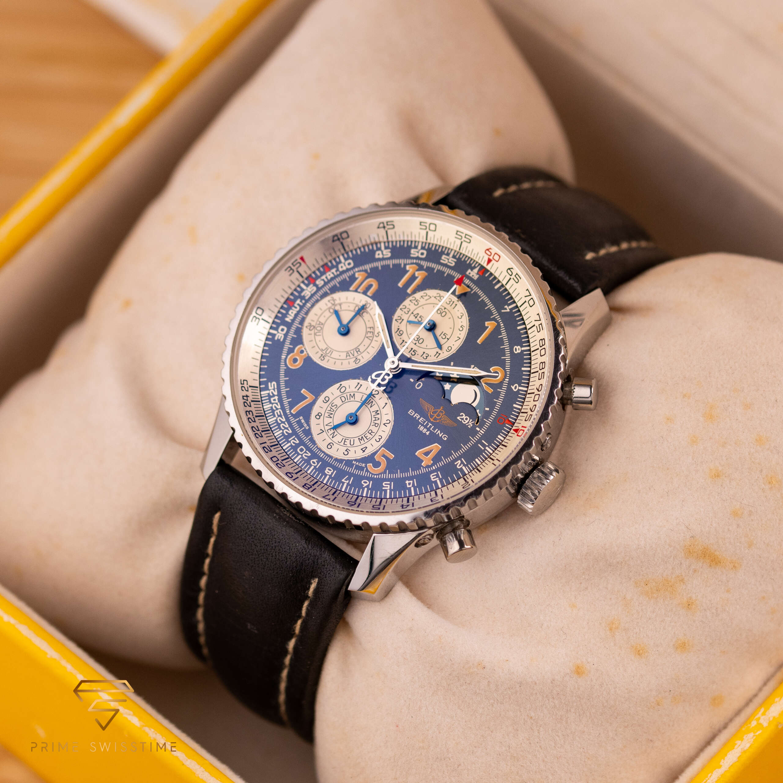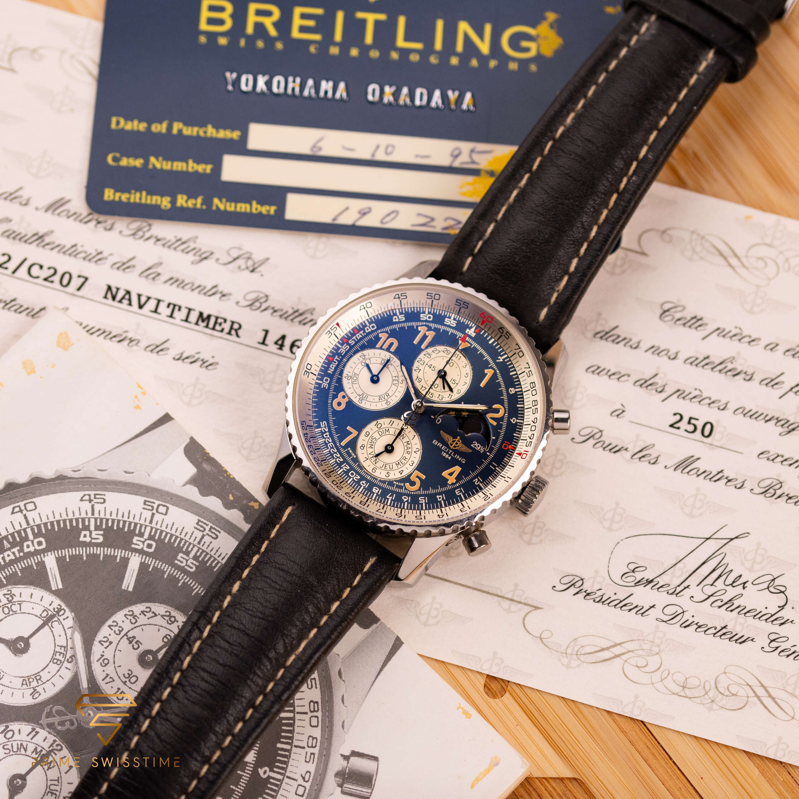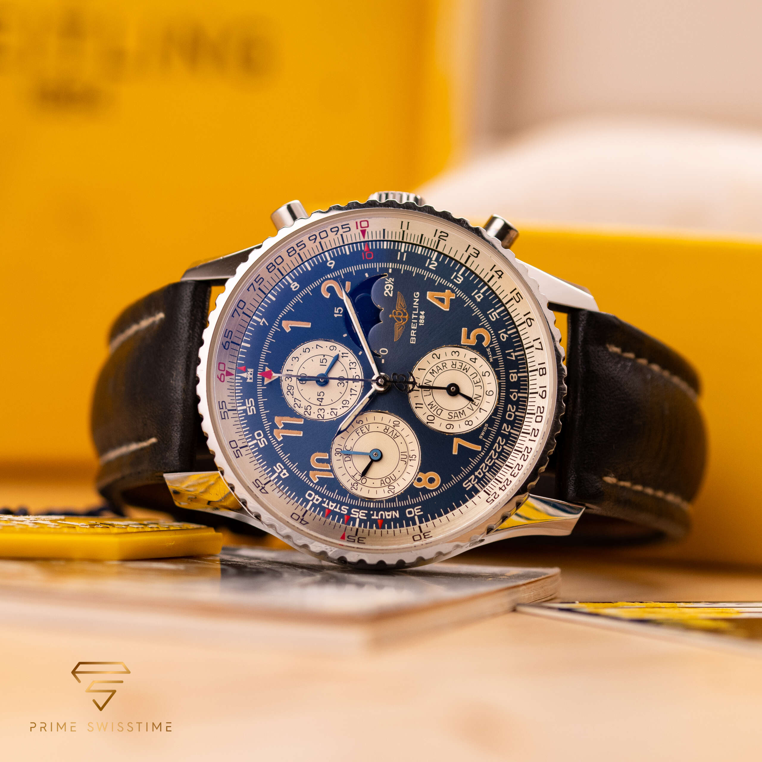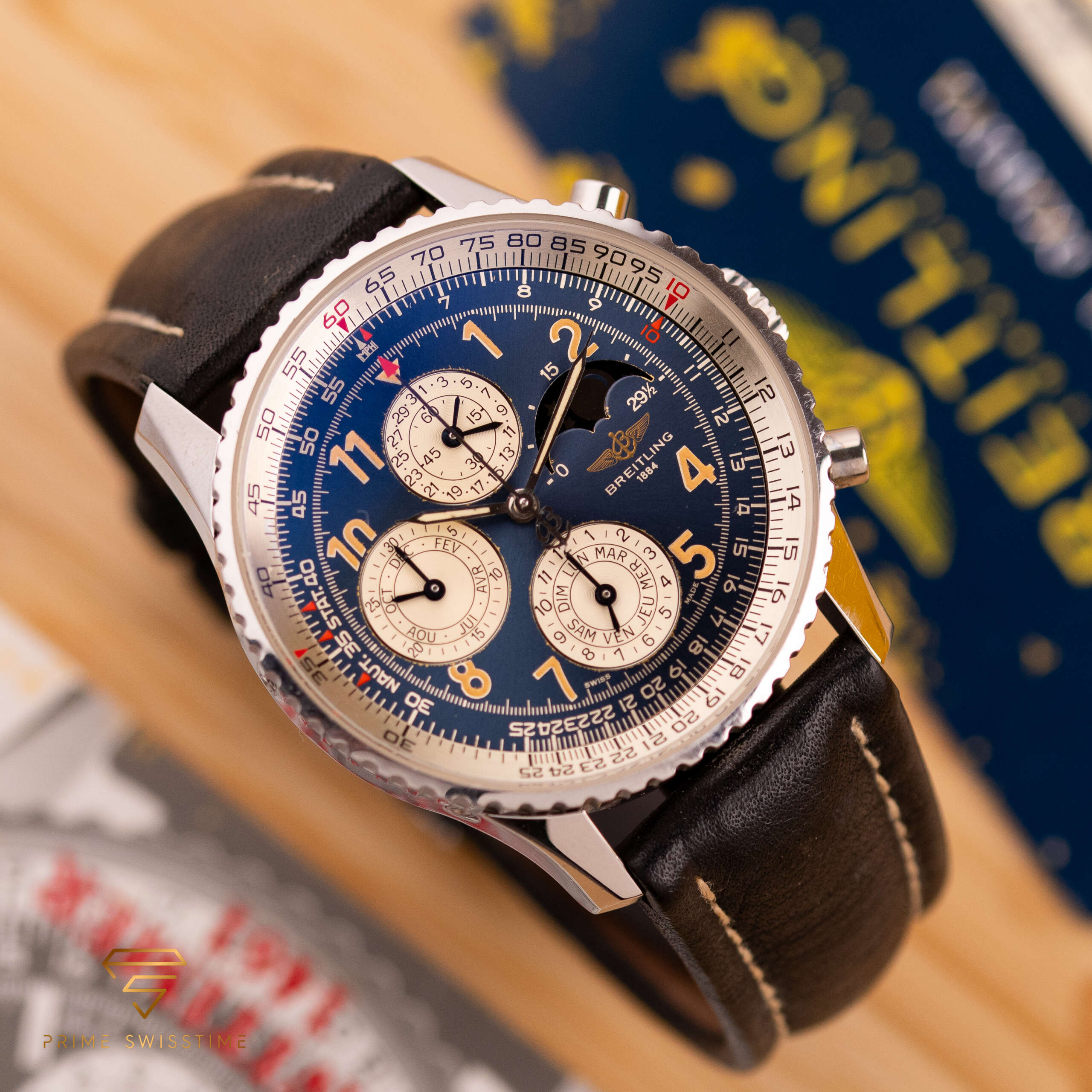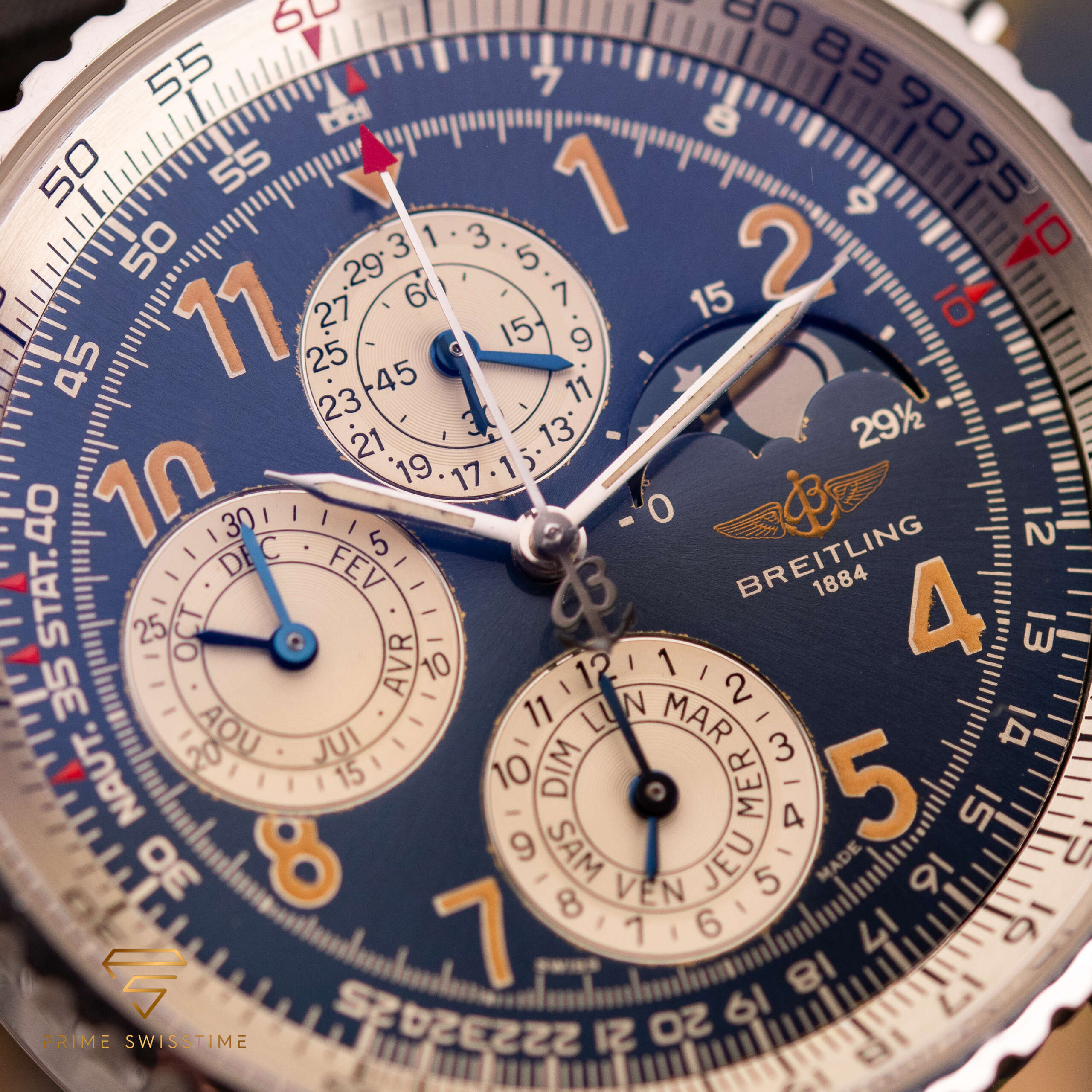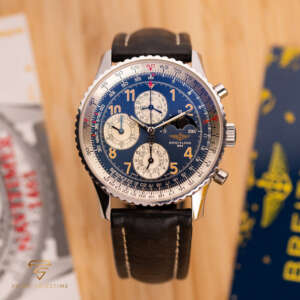 The Breitling Navitimer 1461 is an extraordinary version of the iconic Navitimer, enhanced with a moon phase complication. Renowned for its aviation heritage and technical precision, this model stands as a testament to Breitling’s commitment to innovation and design.