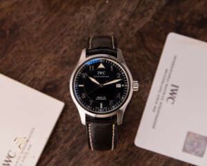 The IWC Mark XV is a classic pilot’s watch, celebrated for its clean design and reliable performance. This model is a testament to IWC’s dedication to precision and functionality, making it a staple in aviation-inspired timepieces.