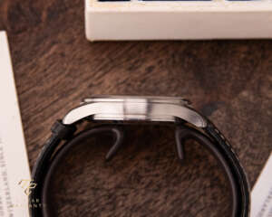 This particular piece is in good condition, freshly serviced, and comes with the original box and an unfilled warranty card. A remarkable choice for enthusiasts of timeless and practical designs.