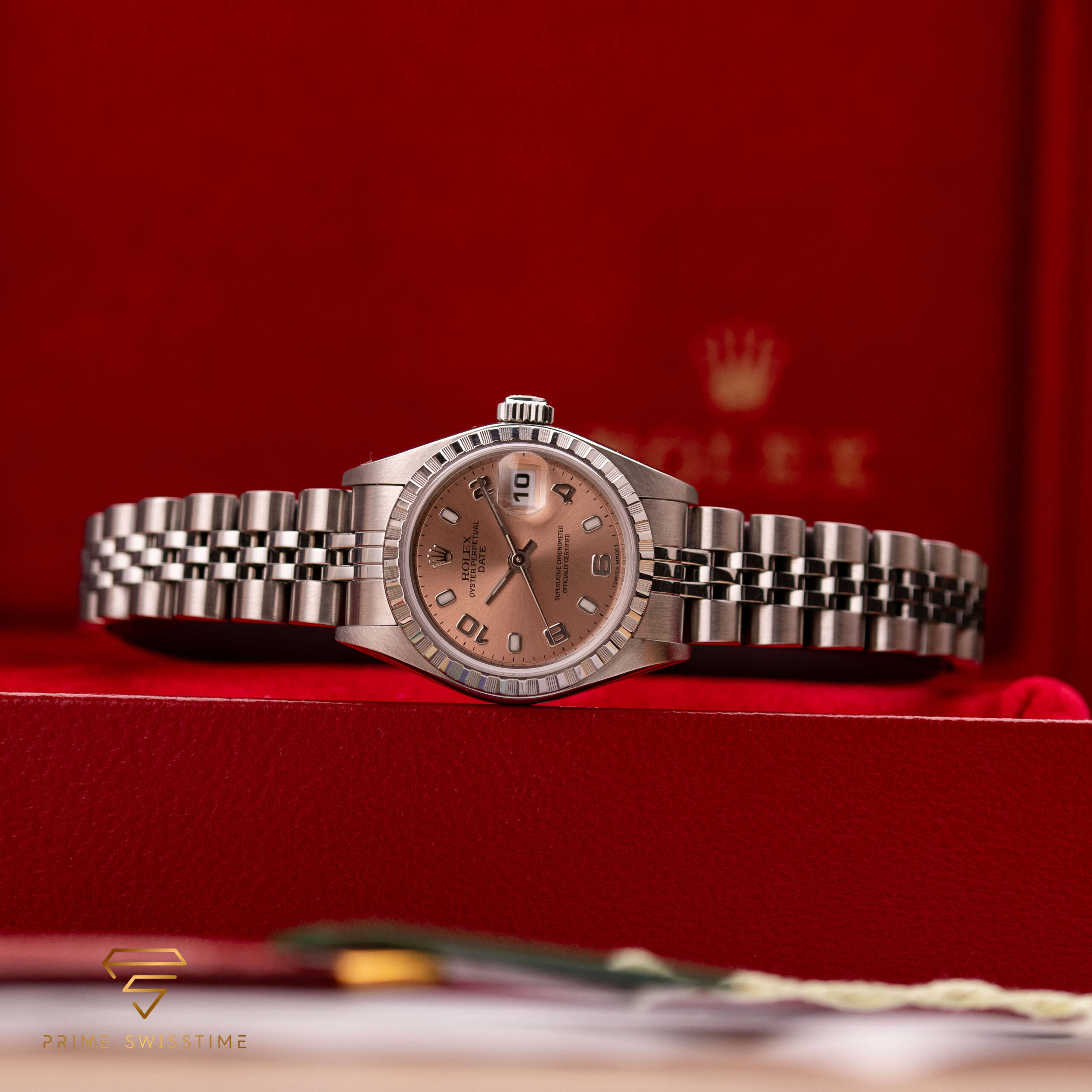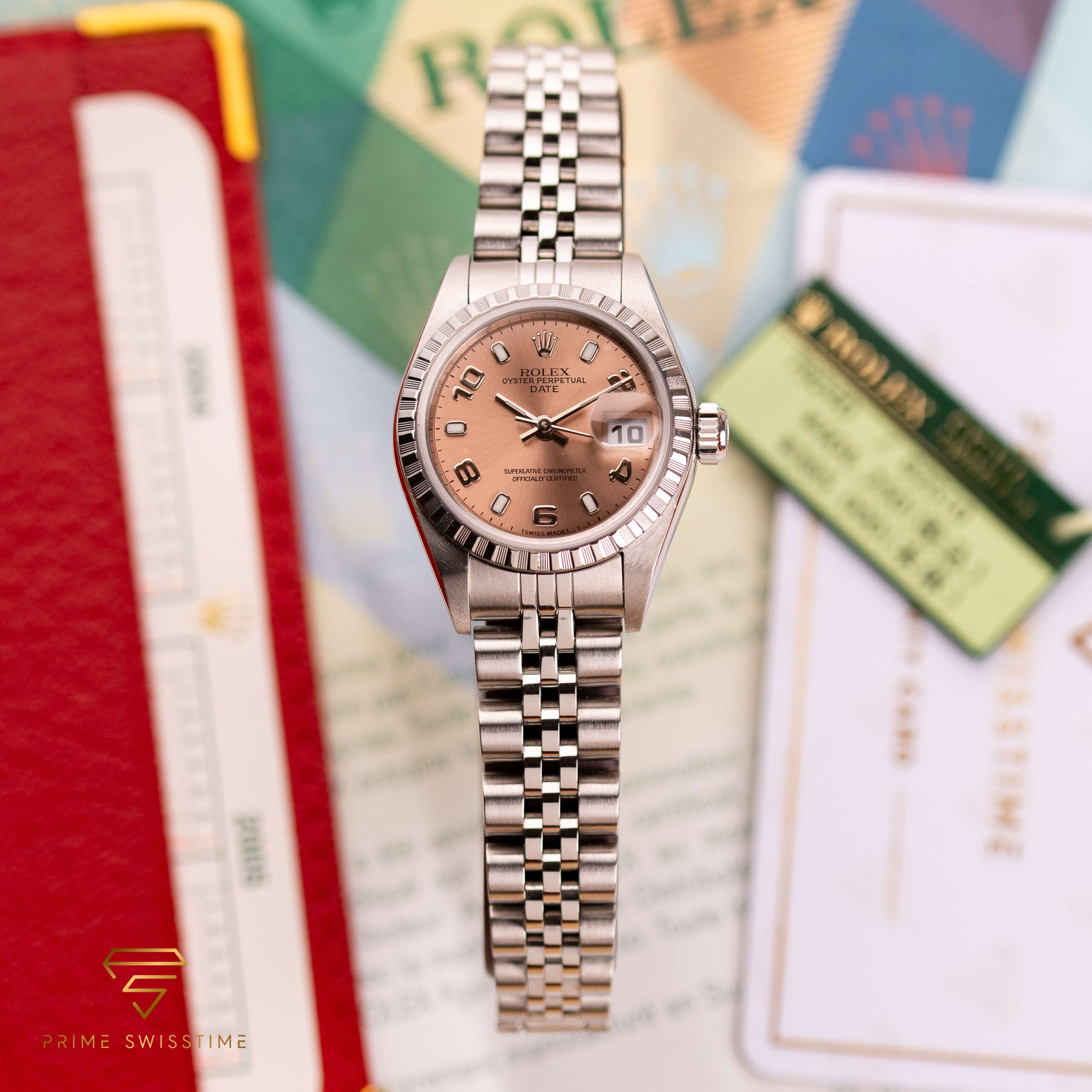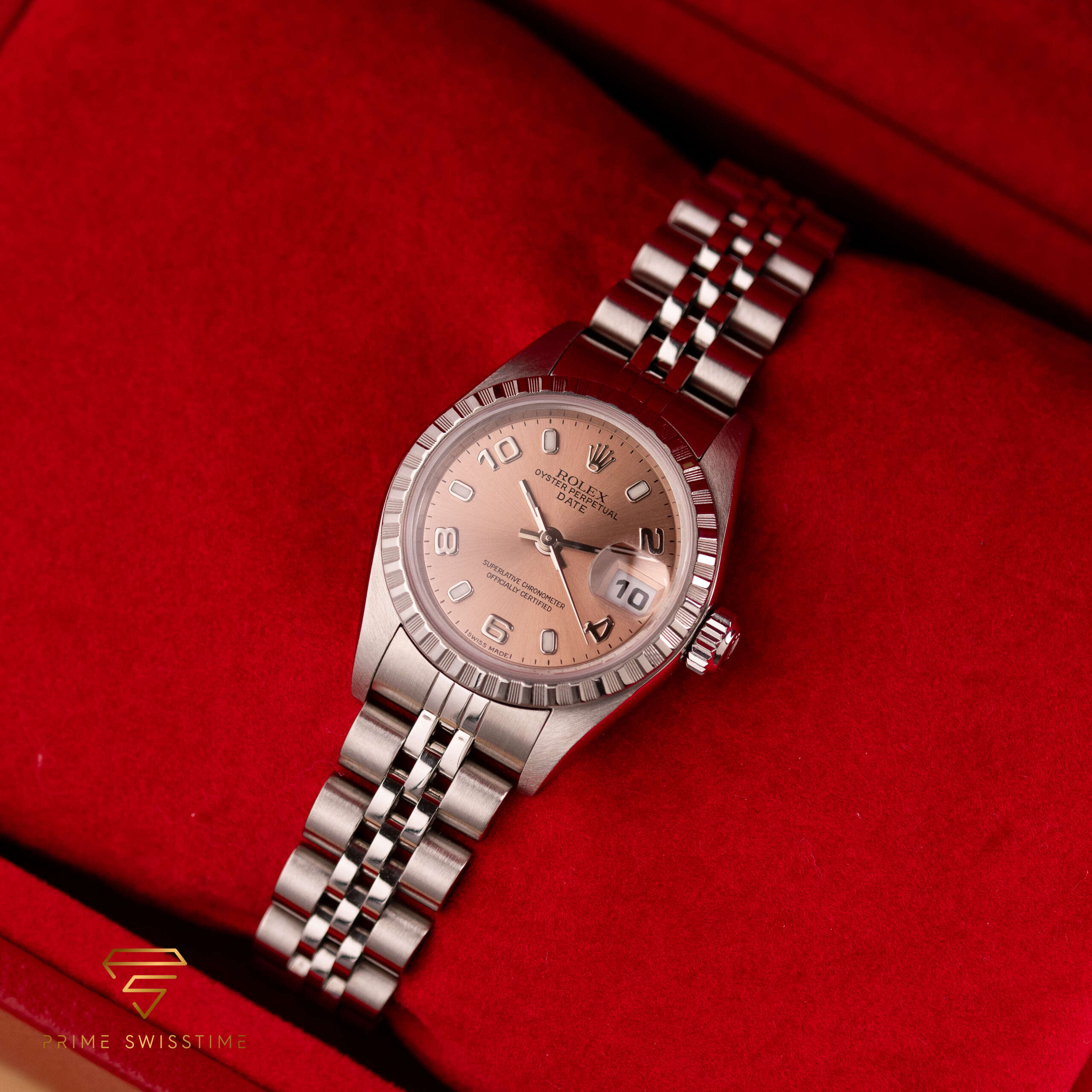 The Rolex Oyster Perpetual Lady Date is a sophisticated timepiece, celebrated for refined design and exceptional precision. This model blends elegance with functionality, making it a timeless choice for any occasion.