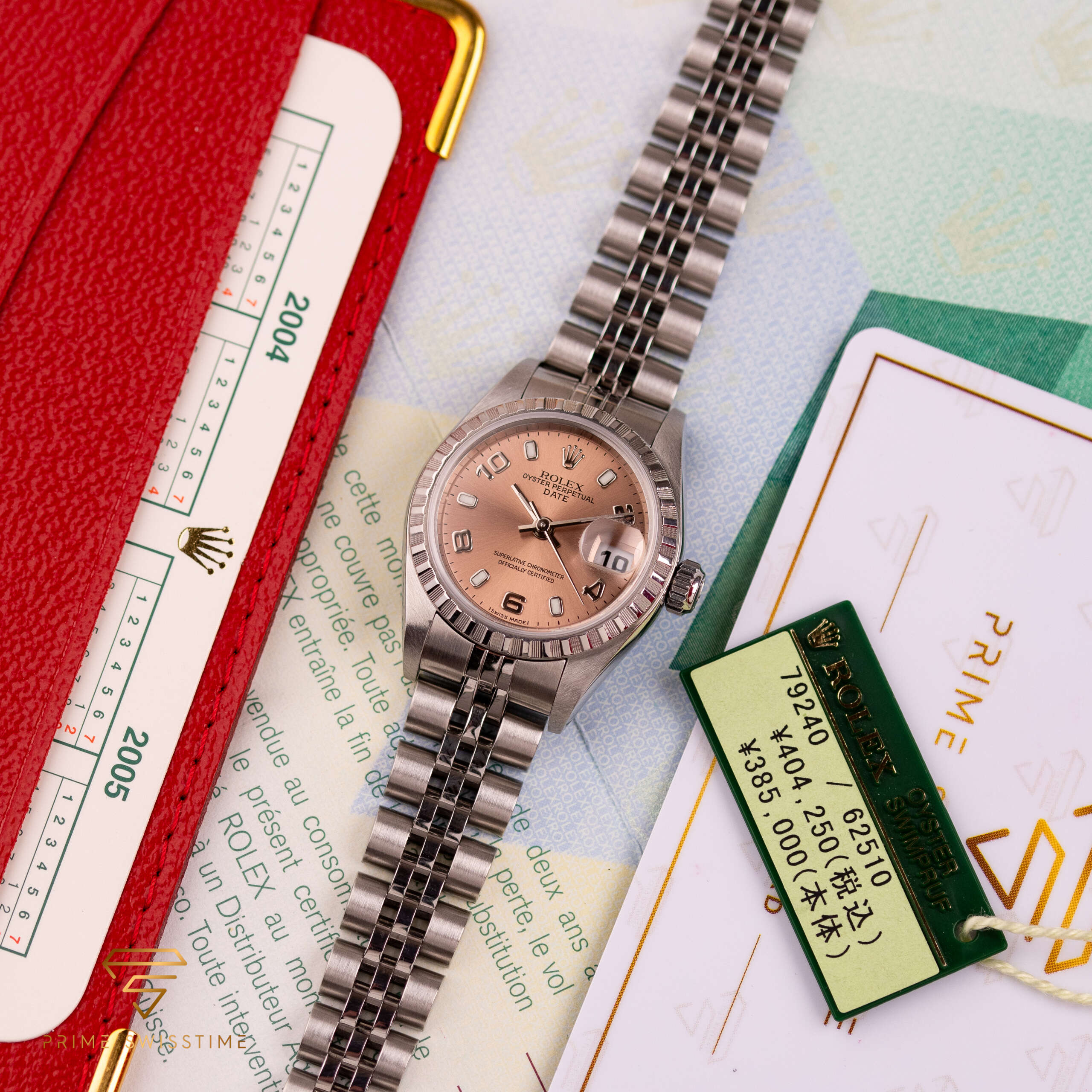 This particular piece, originally sold in 2004, features a beautiful Salmon dial that adds a unique charm to the design. The watch is in excellent condition, freshly serviced, and comes as a complete set with all original accessories from the manufacturer.